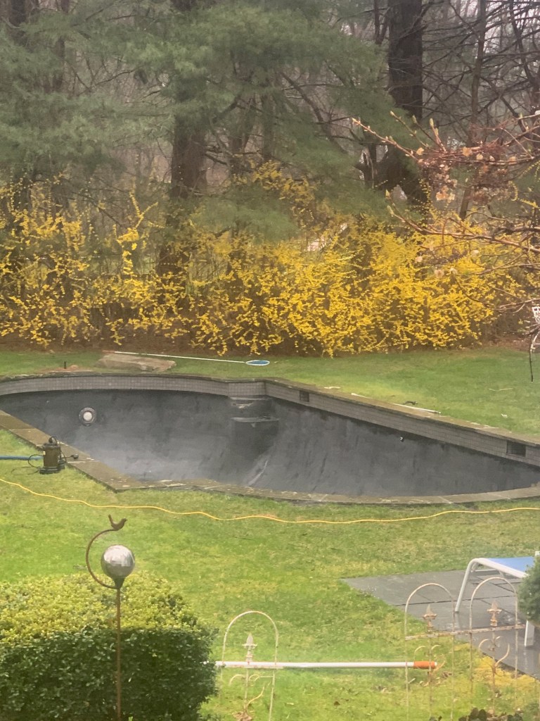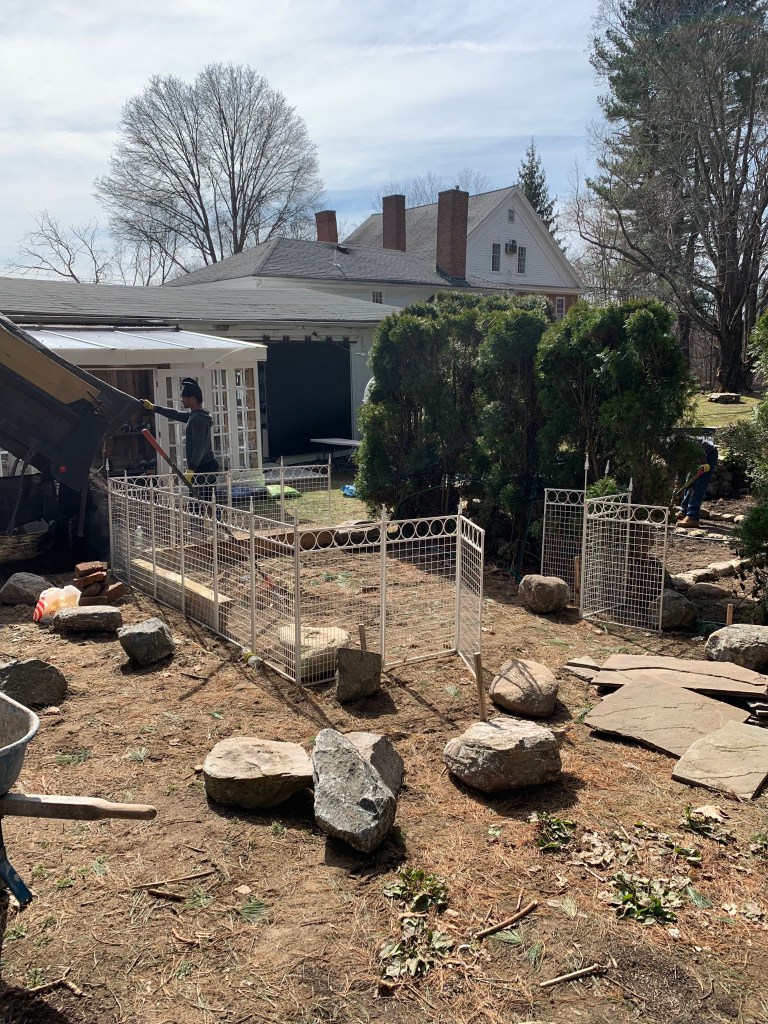 Natural forsythias are seasonal privacy barriers so we put in 35 arborvitae for the year round