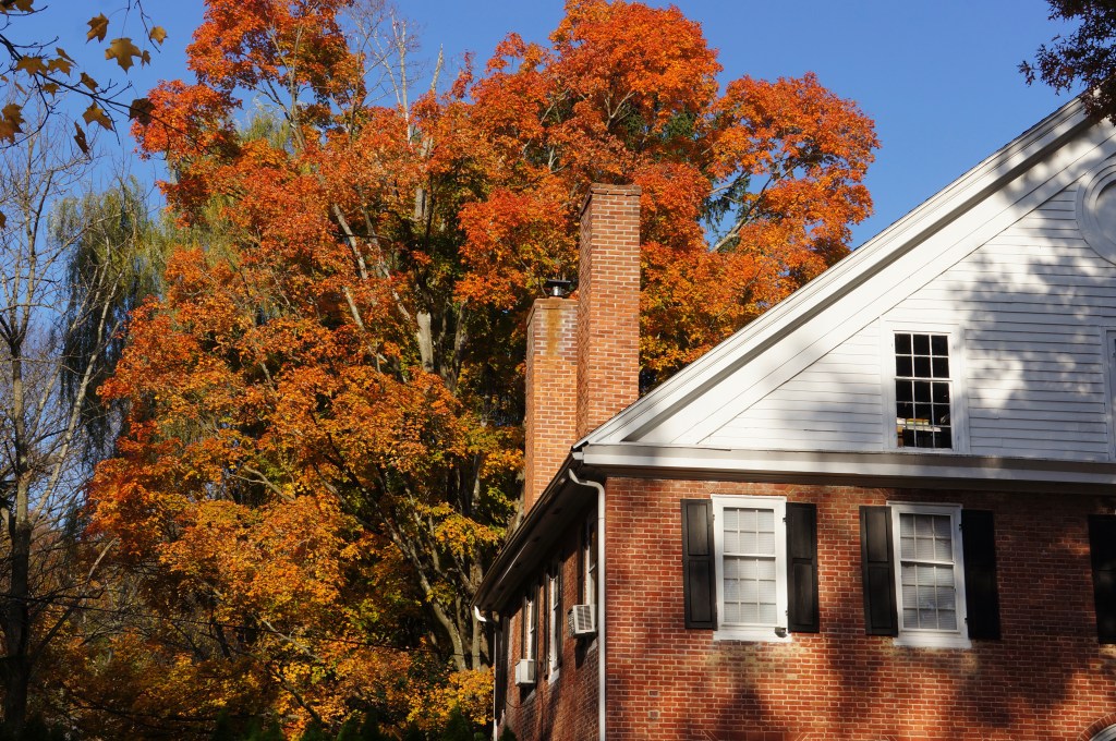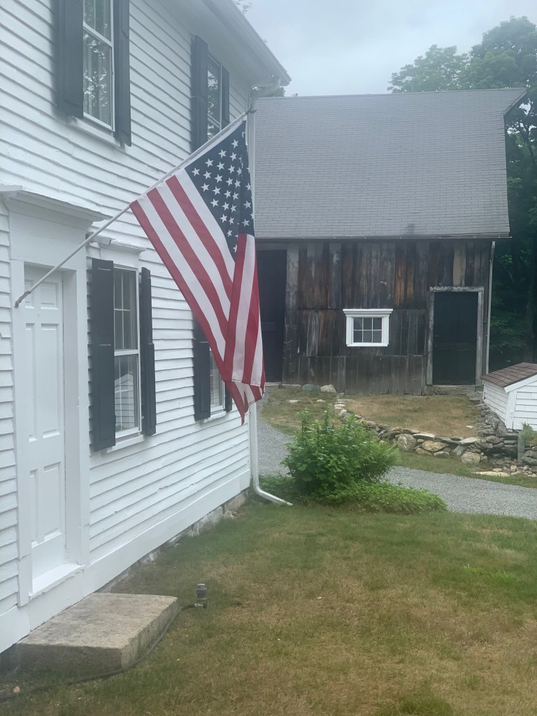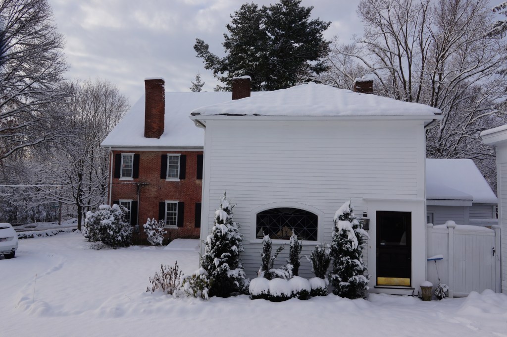 Here are some more of the house views as seen from the property. The home is formed in two parts, the original white Federal clappboard section is framed as a post-beam maple hardwood construction, standing the test of time. This portion of the home is solidified by it’s hand crafted construction with hand-hewn beams taken from the property. The red colonial section was constructed as a Georgian style home using bricks brought back to the building site from Boston where they were exchanged for produce from the very successful Pheasant Farm, at the time spanning over 200 acres.