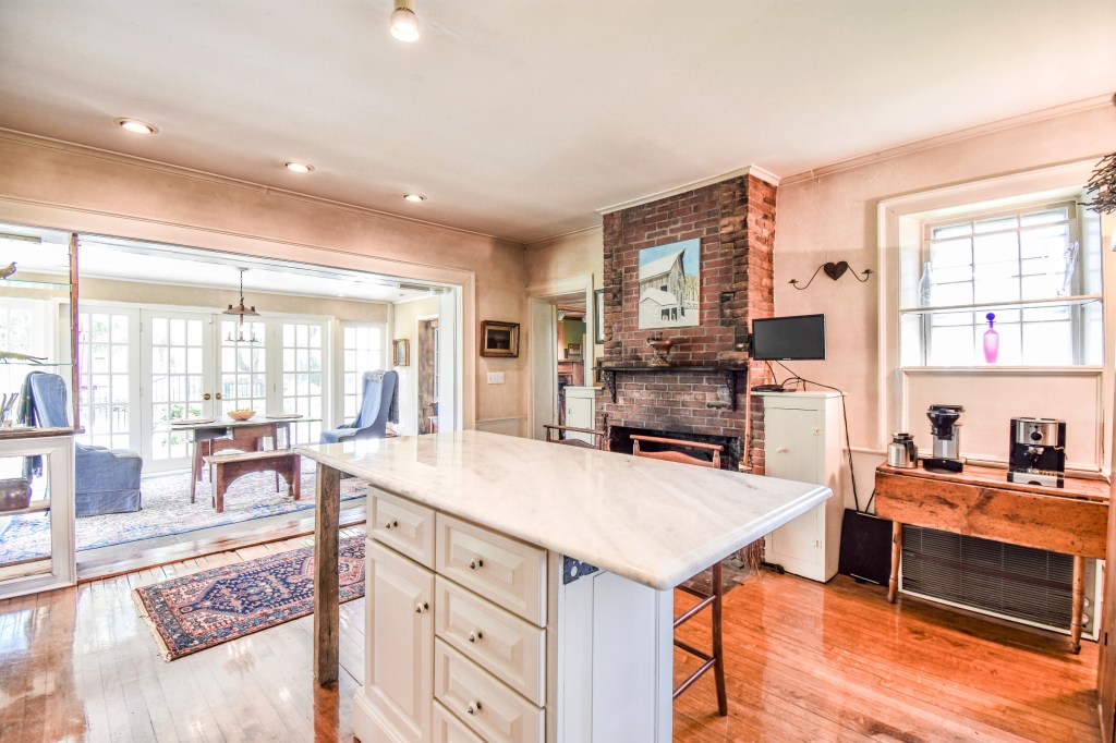 Here’s the country kitchen. Find it on the plot plan. Rooms are featured and labeled with the room name and the LEVEL (L1,L2,L3). Start here with LEVEL 1. This is an easy way for interested parties to understand the layout and style of the home. Pheasant farm has verified, archived records with the Southborough Historic Society when the main house was built. Later, the center entrance colonial was constructed with its massive stone foundation seen in basement views. In 1950 the sills on the main house were upgraded, steel members incorporated into the brick facades, and the barn reconstructed to it’s current size. This first set of pictures features LEVEL 1. To better understand the open footprint layout of the farm, use the floor plan tab along with the room pictures. Click thru the buttons to see each LEVEL. Note: the glass conservatory (L1) has double Dutch/French doors that can be swung open for larger group parties, to offer unobstructed pass thru access to the family/entertainment room (L1).